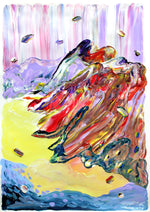 NORDIC LANDSCAPE. Painting on paper by Jeanette Lafontine. The image is part of a series of works on paper inspired by Nordic nature and science fiction, where the alternation between conscious and intuitive choices creates an exciting, colorful and tactile expression. - See more from Jeanette here